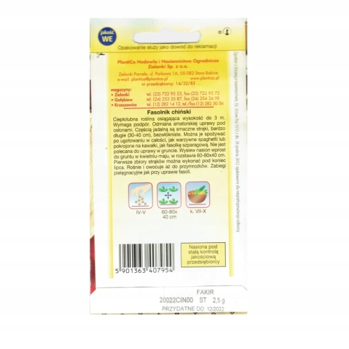 Fasola Fasolnik chiński Fakir nasiona 2,5 g