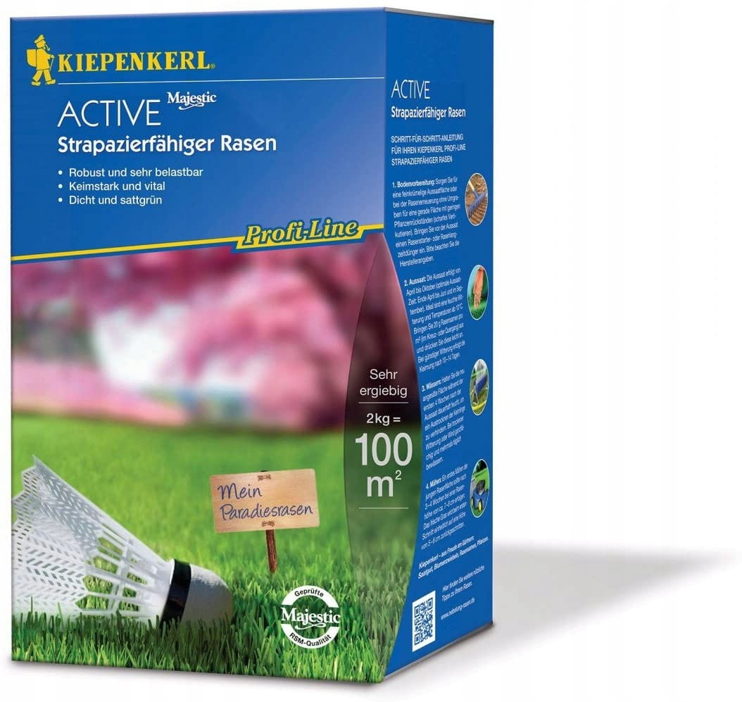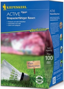 Trawnik "Active" jest bardzo uniwersalny i odporny na użytkowanie. Przeznaczony również na miejsca do uprawiania sportu. Trawa ta jest bardzo trwała i odporna. Dzięki dużej ilości nasion na m² otrzymujemy bardzo gęsty trawnik o pięknym kolorze.