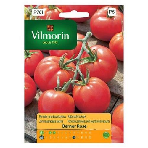 W każdej paczce znajduje się 0,2 g nasion pomidora Berner Rose - malinowy - gruntowy i pod osłony, karłowy. Opakowanie zawiera informacje o zasadach uprawy oraz o terminie przydatności do siewu.