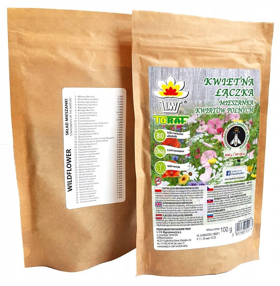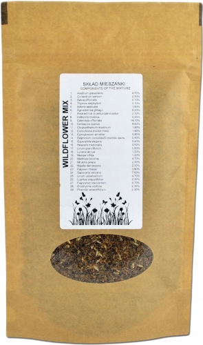 W skład mieszanki wchodzi ponad 40 gatunków kwiatów dziko występujących w zbiorowiskach śródpolnych.