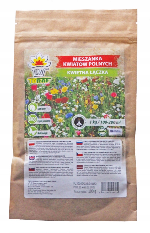 przy mieszaniu z trawą 30 g nasion kwiatów na 1 kg nasion trawy na ok. 40 m2
