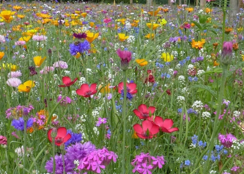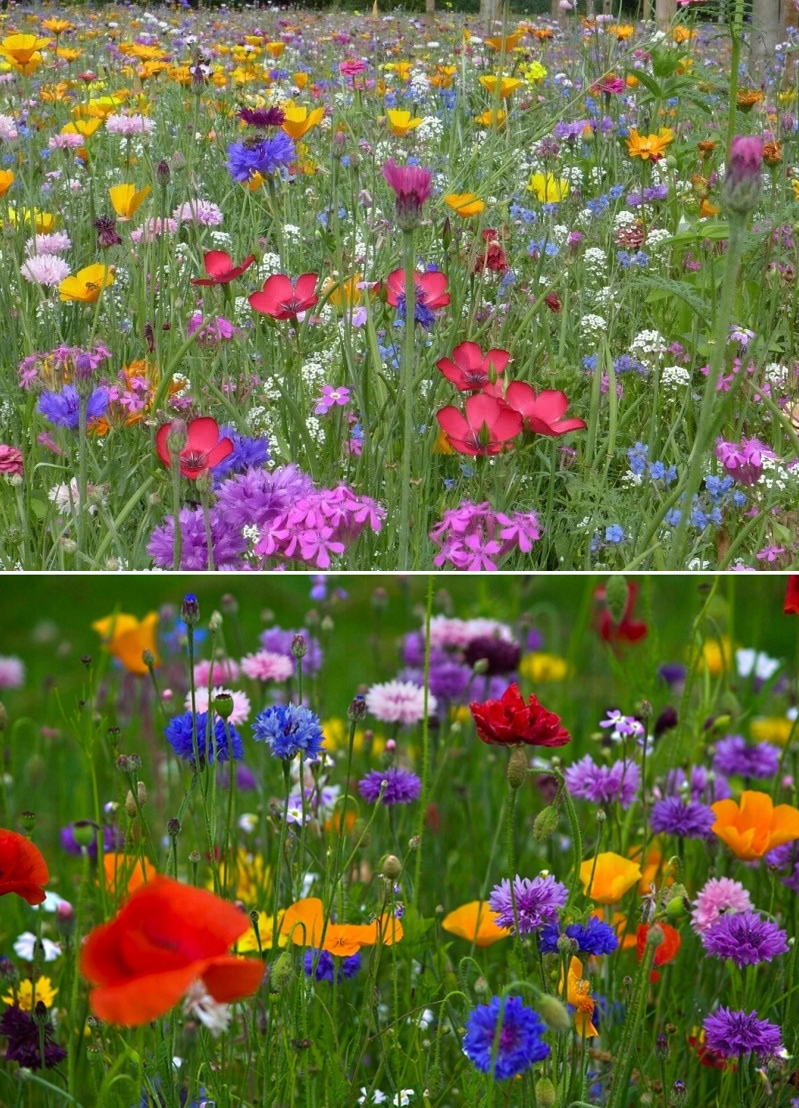 Przy mieszaniu nasion z trawą używaj 40-50% mieszanki kwiatów polnych do 50-60% nasion trawy.