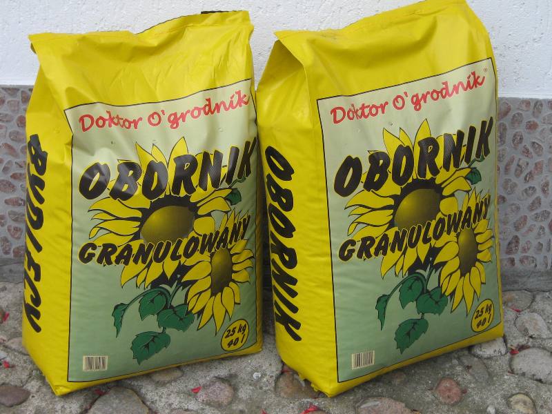 OBORNIK GRANULOWANY to suchy wysoce skoncentrowany (90% suchej masy) granulat naturalnego nawozu zwierzęcego.