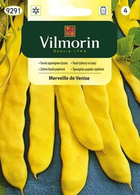 Fasola szparagowa tyczna Merveille de Venise jest to odmiana o żółtych, długich, bezwłóknistych płaskich strąkach (18-20cm). Osiąga wysokość 2,5 m. Jest bardzo plenna. Nasiona siejemy gniazdkowo po 2-3 co 50 cm.