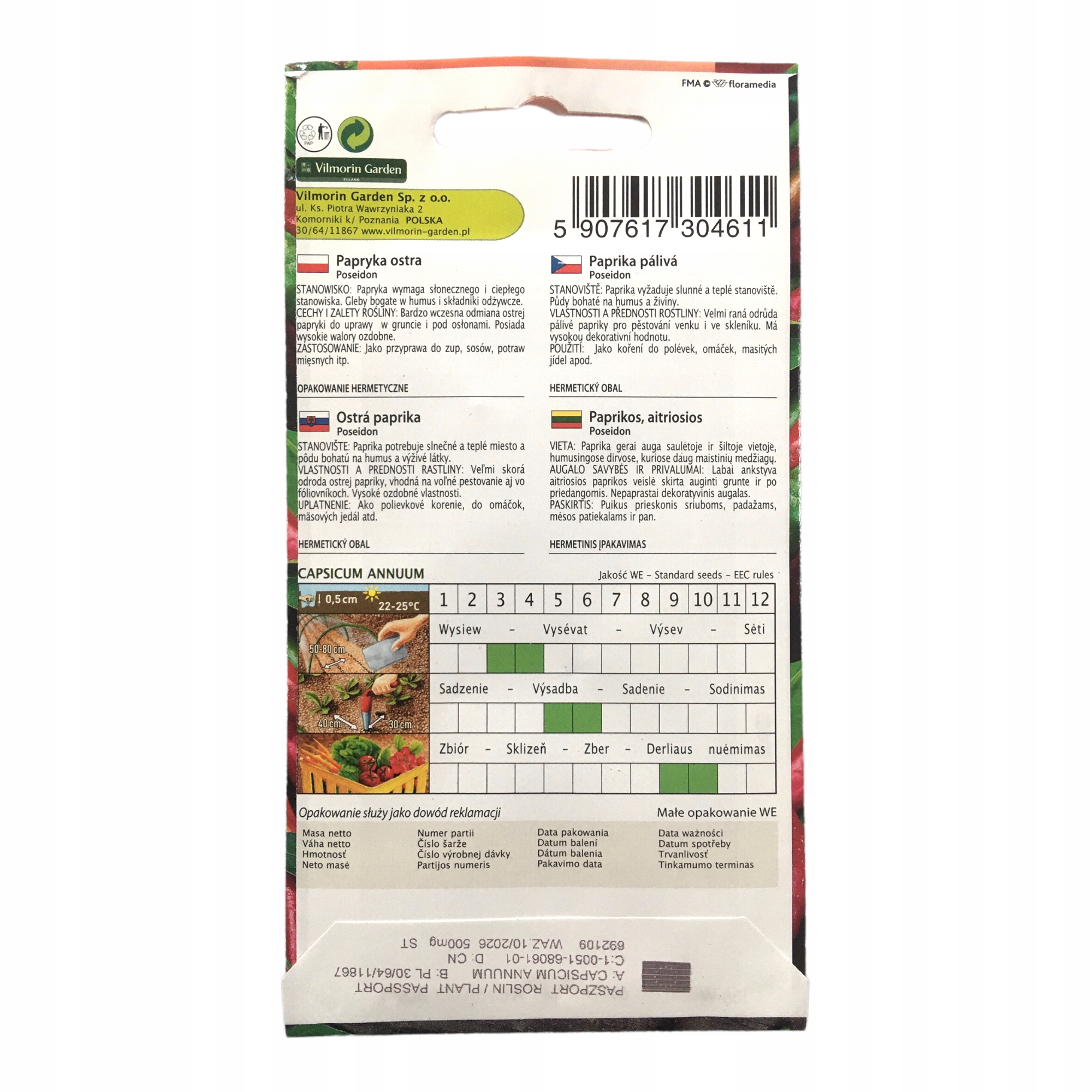 VILMORIN NASIONA PAPRYKI PAPRYKA CZERWONA OSTRA POSEIDON 0,5G