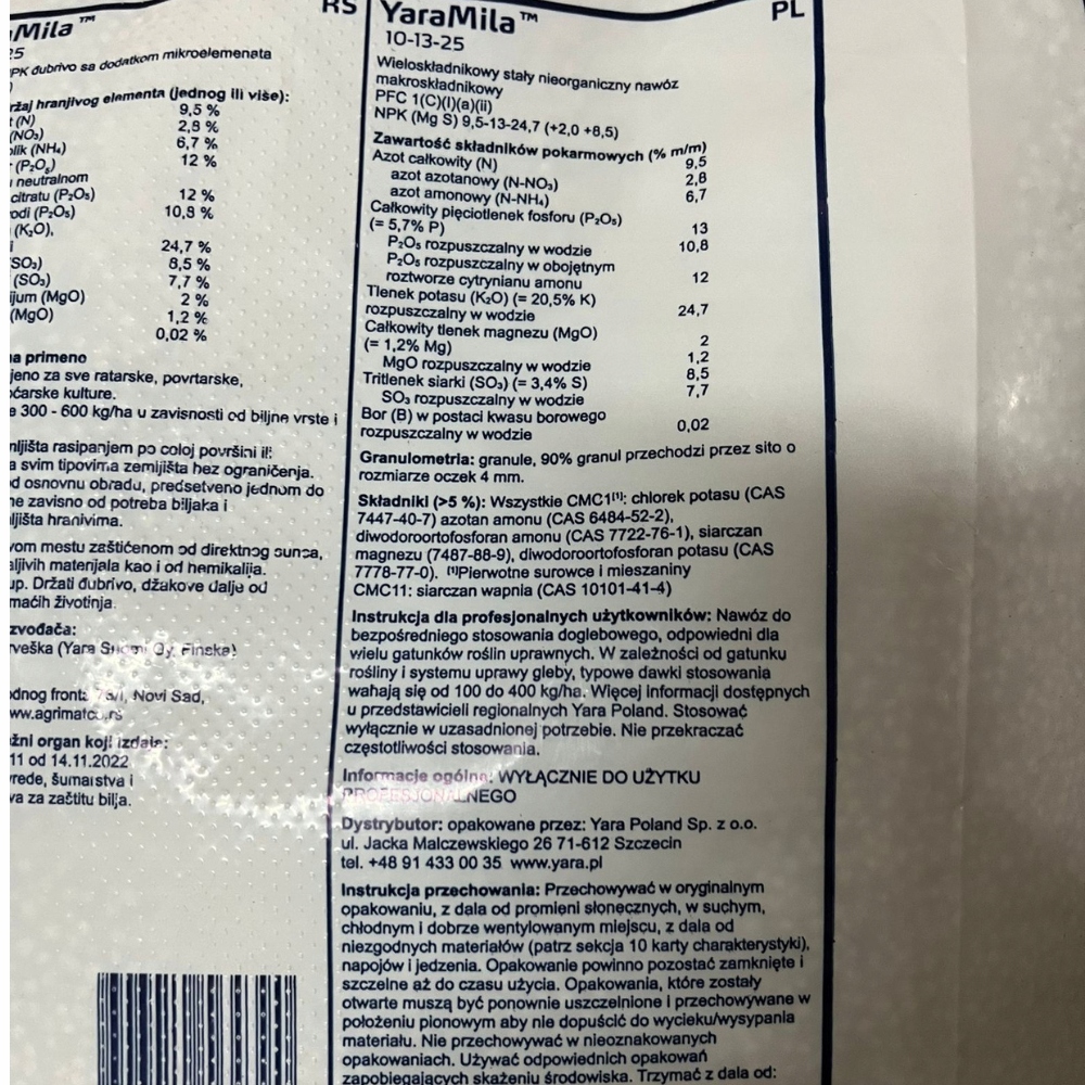 Co ważne, nasz nawóz pochodzi bezpośrednio z polskiej dystrybucji firmy YARA i jest dostarczany w oryginalnych workach. Nie przepakowujemy go ani nie rozsypujemy z dużych worków Big Bag, co często prowadzi do zbrylania się nawozu i jego nasączania wilgocią.