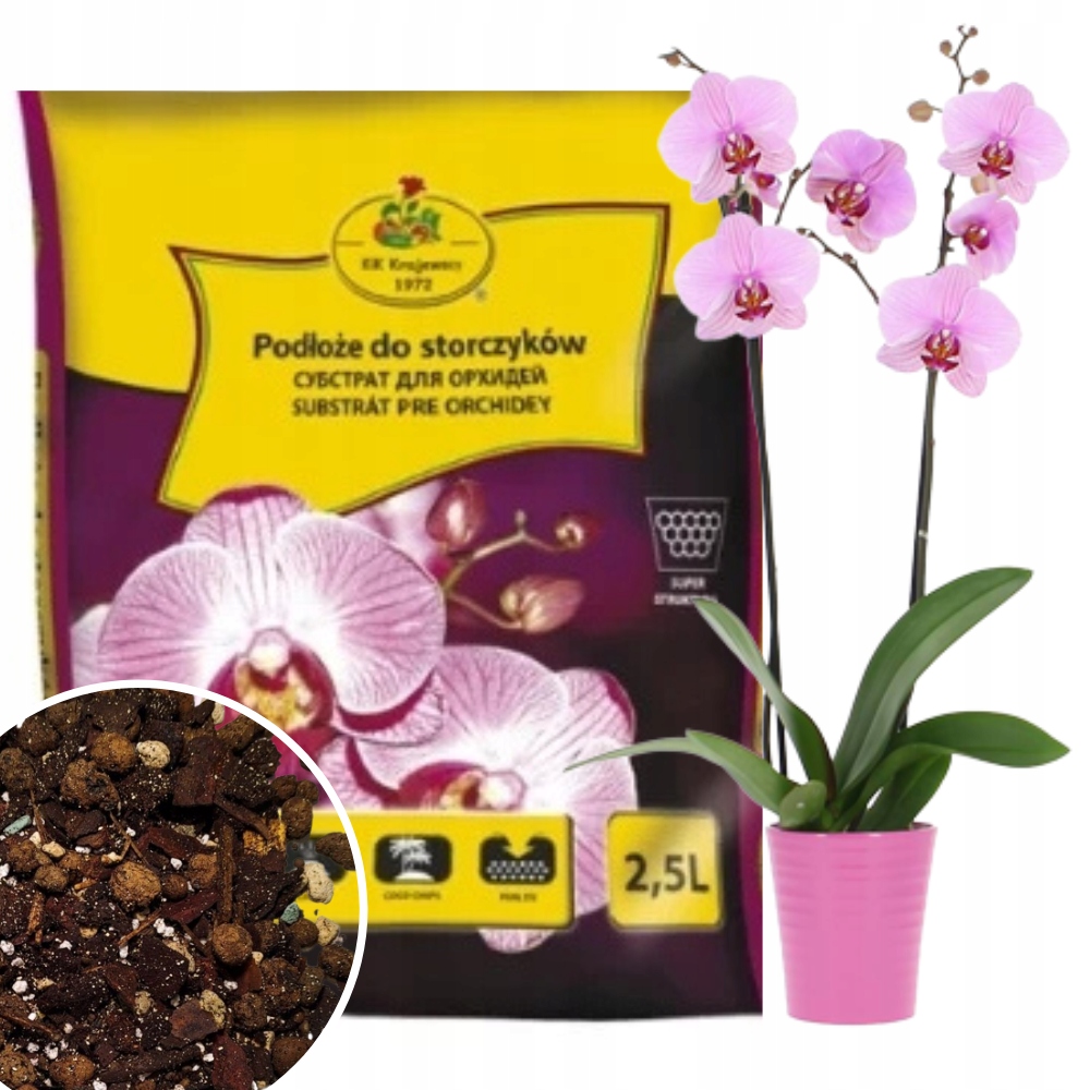 • Kora piniowa jest twarda, oczyszczona i przekompostowana. Zapewnia optymalne warunki do zdrowego rozwoju i wzrostu storczyków. Przyjmuje bezpieczną ilość wody, świetnie imituje naturalne środowisko storczyków epifitycznych